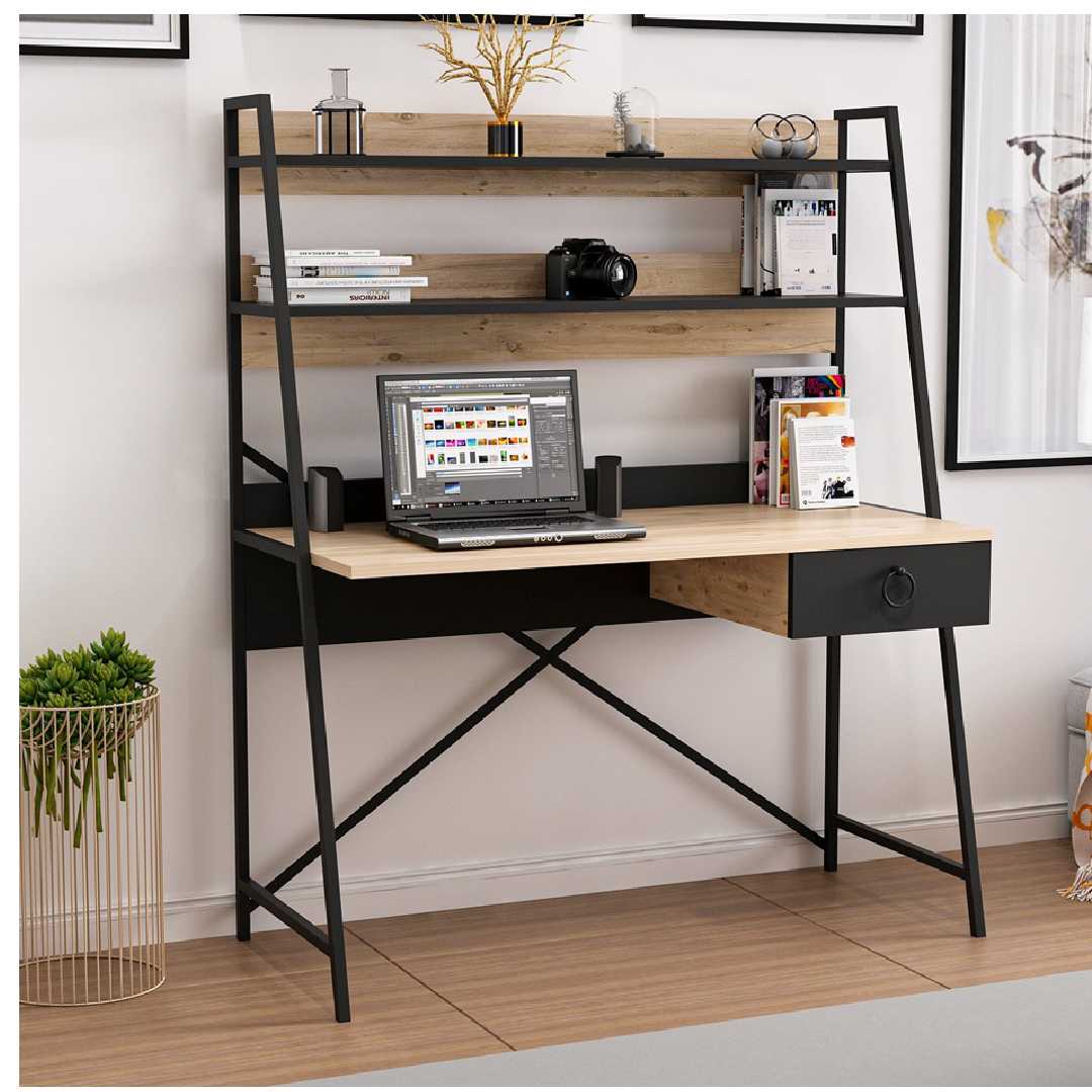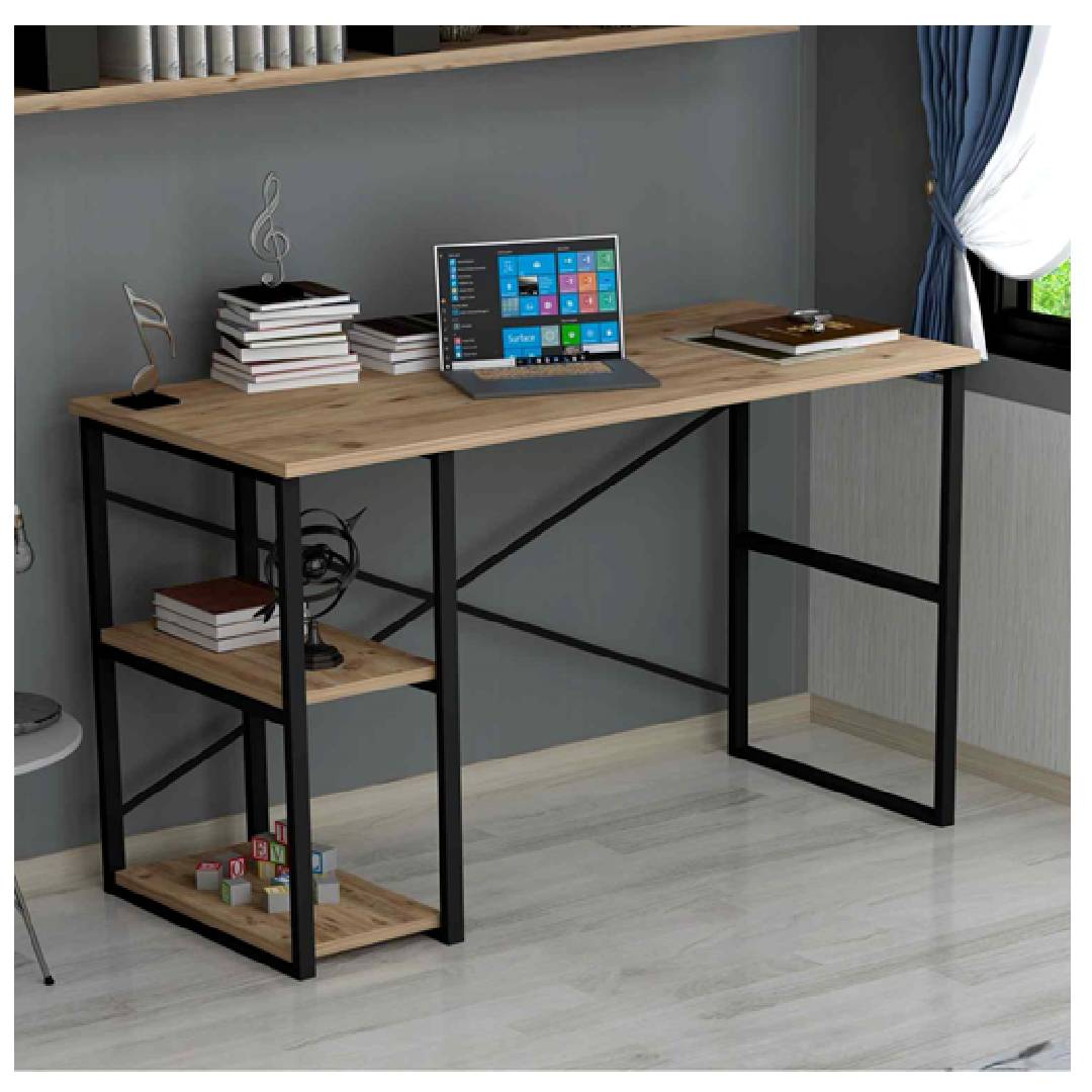 שולחן למידה עם מדפי צד רחבים וחזקים. שילוב של עץ עם ברזל מושחר