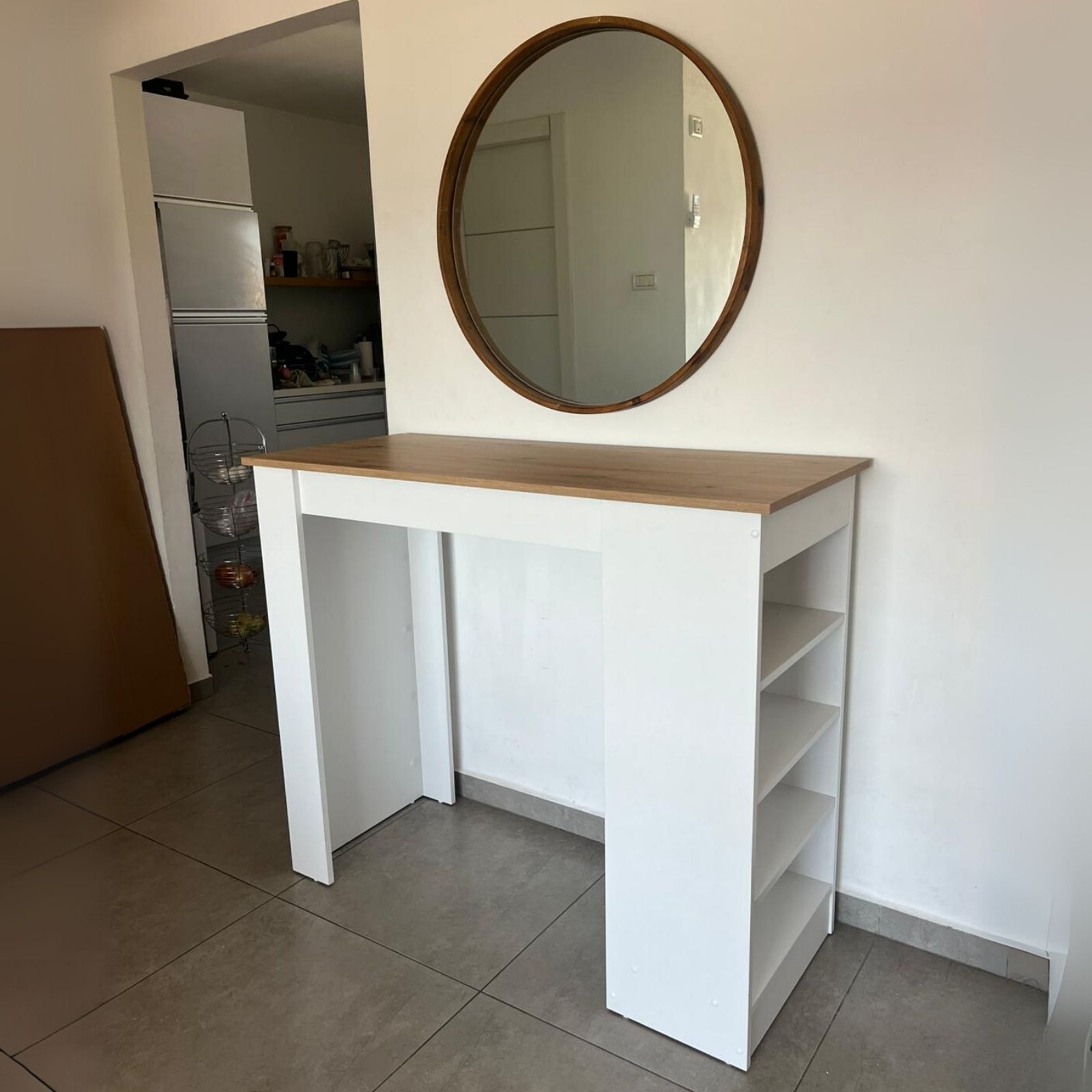 שידת כניסה עם מקום אחסון לנעליים מראת גוף וווי תלייההמשך -